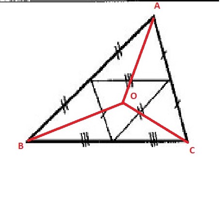 соединить отрезками точку О с каждой вершиной треугольник, образованного средними линиями.