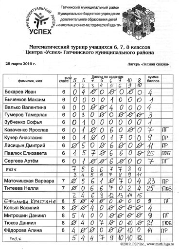 МАТЕМАТИЧЕСКИЙ ТУРНИР (29 марта 2019 г.)