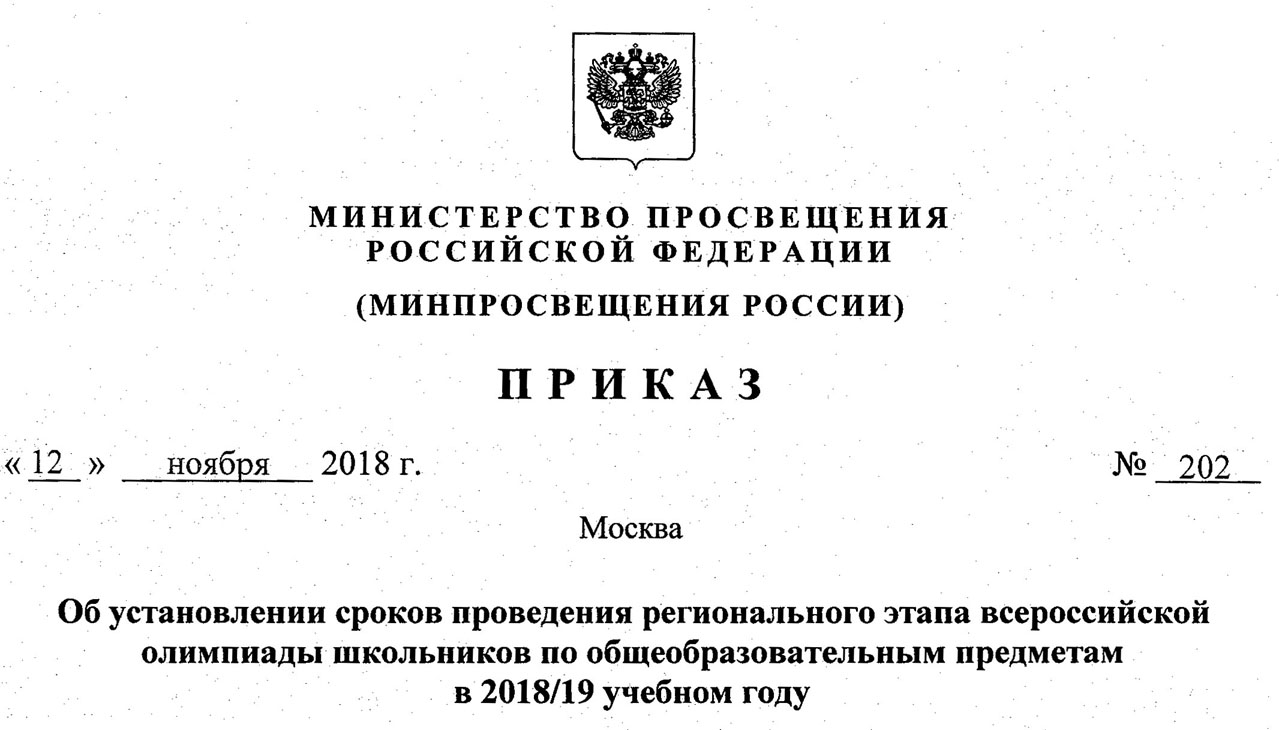 Даты проведения региональных этапов Всероссийской олимпиады школьников на 2018-2019 уч. год установлены Министерством просвещения РФ. Подробнее...